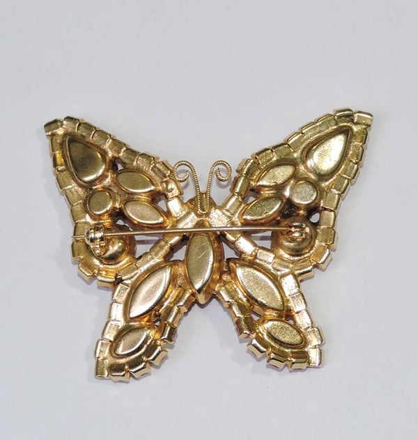 Vintage Strassbrosche Rosasteine um 1950/60 Schmetterling