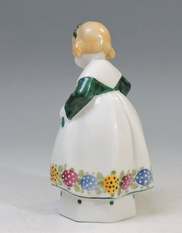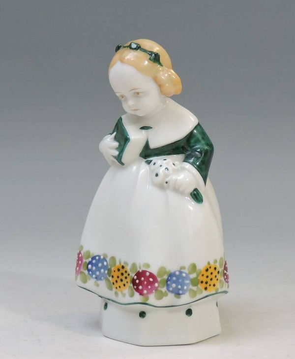 Traumhafte, alte Figur aus dem Hause Katzhütte. Auf einem Sockel stehendes Mädchen mit einem Buch und Blumen. Wunderschöne Bemalung im und herrlich dargestellte Figur. Das seltene Stück ist in sehr gutem Zustand, keine Beschädigungen oder Ähnliches. Gemarkt ist die Figur mit blauer Katzhütte Stempel. Höhe beträgt 11 cm.