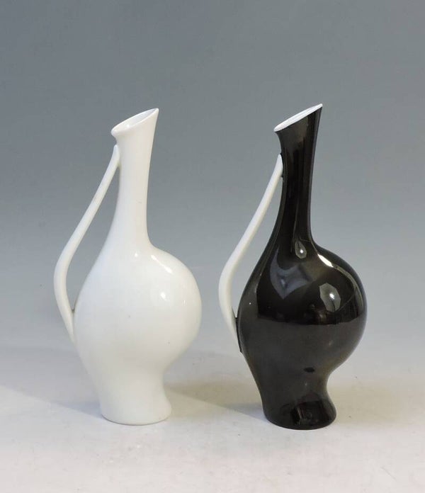 ROSENTHAL KUNSTABTEILUNG Orchideenvasen-Paar Schwarz & Weiß FRITZ HEIDENREICH