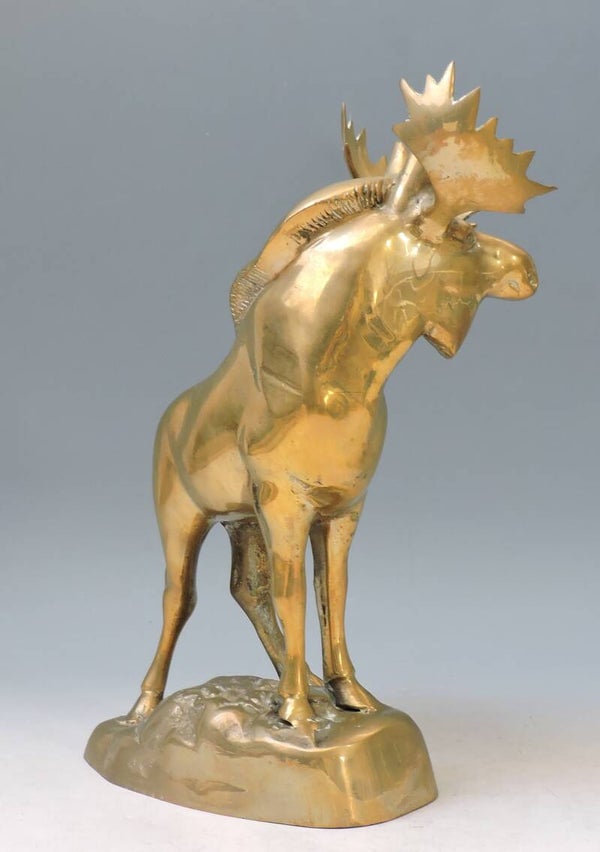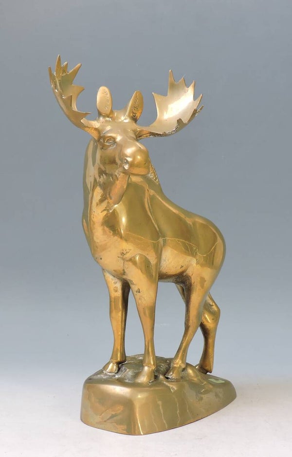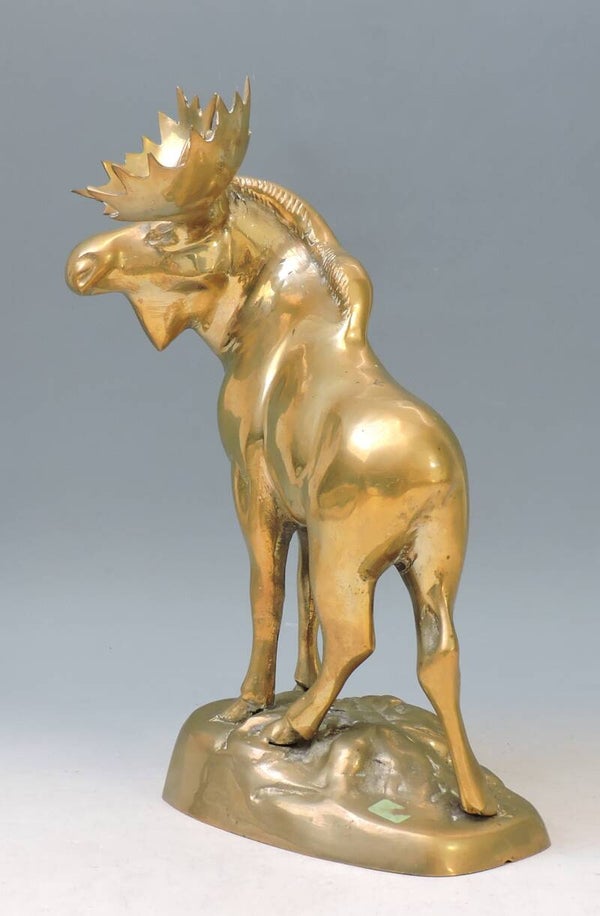 Majestätische Statue eines Elchs aus Messing. Sehr gelungene Arbeit eines Elchs auf einem Sockel stehend. Die Statue ist 35 cm hoch und 4,2 Kg. Schwer.