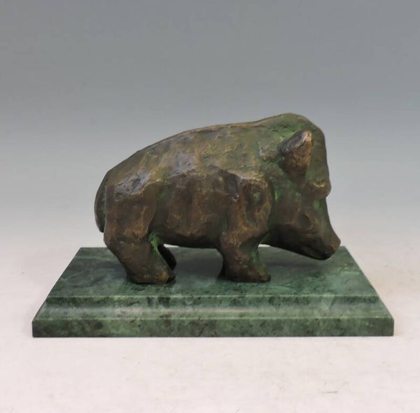 Seltener Briefbeschwerer in Form eines Wildschweins auf Marmorplatte. Das kunstvoll aufgearbeitete Wildtier ist aus Bronze und steht auf einer abgesetzten Platte. Sehr schönes Schreibtisch Accessoire mit besonderem Charme. Gesamtlänge der Platte LxBxH 15,5 cm x 9 cm x 10 cm. Sehr guter Zustand, keine Beschädigungen oder Ähnliches.